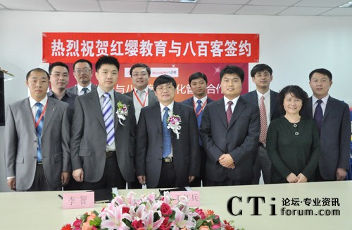 簽約當日,八百客與紅纓教育在北京中關(guān)村軟件園舉辦隆重的“信息化管理啟動會”。紅纓總經(jīng)理王紅兵、八百客CEO李智等參加此次項目的啟動會。