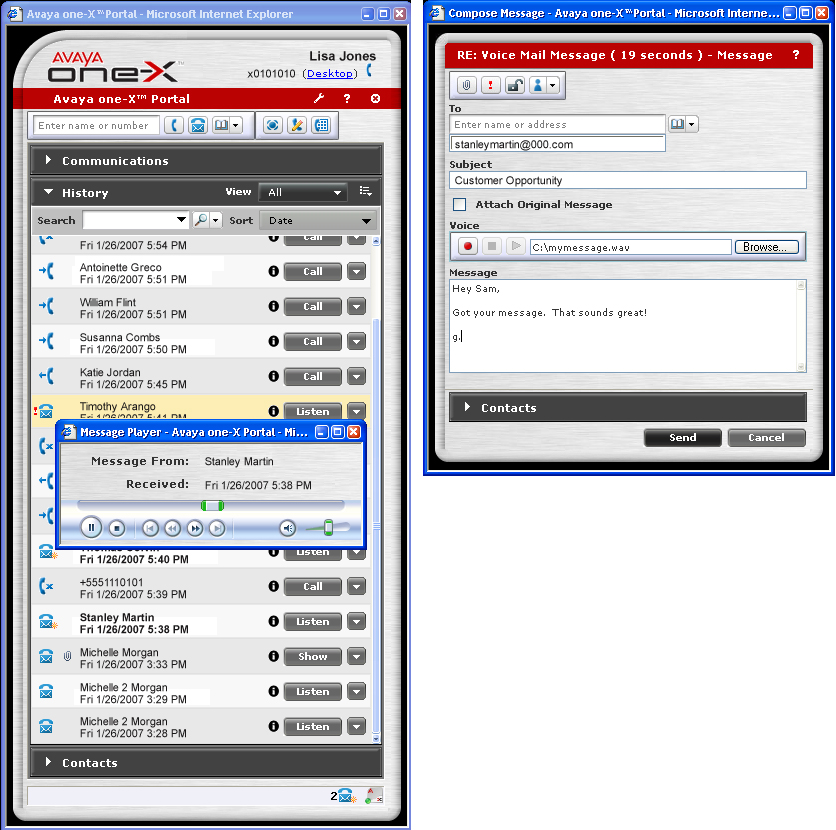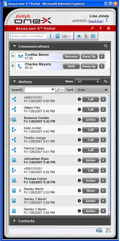 統(tǒng)一通信市場正在步入新的發(fā)展階段,新的產(chǎn)品與方案逐漸面世。在不久前舉行的全球企業(yè)通信盛會美國VoiceCon上, Avaya推出了全新的one-X Portal, 進(jìn)一步把統(tǒng)一通信從理念帶向?qū)嶋H應(yīng)用。 Avaya one-X Portal能夠讓員工通過基于網(wǎng)絡(luò)的界面,簡便安全地使用各種通信功能,包括語音通信、消息管理、移動(dòng)辦公和會議等等。通過簡便、創(chuàng)新的方式,這個(gè)方案讓使用者從桌面電腦獲得統(tǒng)一通信的全部功能,從而提高了效率、管理能力和業(yè)務(wù)連續(xù)性。