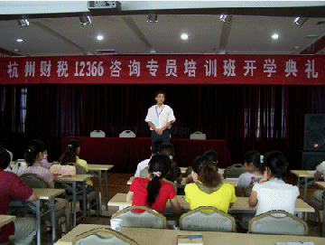 圖為杭州財稅12366咨詢專員培訓(xùn)班開學(xué)典禮上杭州財稅局人事處領(lǐng)導(dǎo)講話