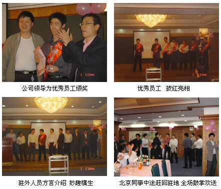 8位2006年度的優(yōu)秀員工,是世紀網(wǎng)通經(jīng)過全體員工無記名投票選出16位候選人,又16進12,12進8,幾次PK后產(chǎn)生的,他們中,既有業(yè)務第一線風餐露宿的渠道經(jīng)理,也有連續(xù)工作數(shù)天不下火線的研發(fā)工程師,既有生產(chǎn)一線任勞任怨的同事,也有不辭繁累為客戶耐心服務的技術支持工程師、、、、、、,他們在眾多美女簇擁下的披紅亮相、令人感慨萬千的獲獎評語宣讀、發(fā)自肺腑激動人心的獲獎感言、手中亮晶晶的獎杯等等,感染了每個在場的人。李總將一臺新研發(fā)的假O單口網(wǎng)關送給這個項目的主管也是優(yōu)秀員工的工程師時,當工程師說:“抱著這臺產(chǎn)品,就像抱著自己的親兒子一樣、、、、、、”全場無不動容。