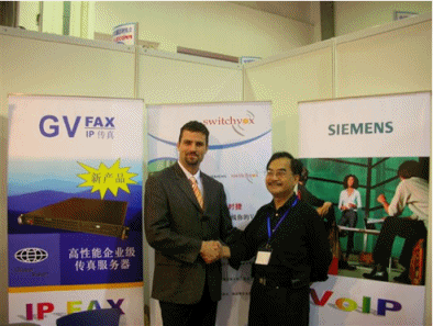 美國訊時捷科技公司作為IP-PBX專業(yè)提供商于2006年5月23-26日參加了最具權威的2006中國國際信息通信展覽會,在上海光大會展中心的B019展位展示了Switchvox IPX與戰(zhàn)略合作伙伴Siemens配套IP終端話機。此次展會,我們還推出了企業(yè)級新一代的IP傳真服務器GV-FAX,此次大會吸引了眾多全國的渠道代表、廠商、集成商和媒體參加,對產(chǎn)品感興趣的來賓絡繹不絕。