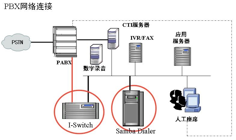 Samba Dialer和潤(rùn)迅通信哈里斯數(shù)字程控交換機(jī)利用ISDN PRI進(jìn)行匯接,共享現(xiàn)有話機(jī),大大保護(hù)了投資。Samba Dialer直接通過PRI進(jìn)行信令檢測(cè),不依賴程控交換機(jī)的CTI功能,這樣可以避免大量外撥電話對(duì)CTI資源的占用而影響呼入業(yè)務(wù)的運(yùn)作。另外,交換機(jī)的CTI接口一般不具備很高的穩(wěn)定性,Samba