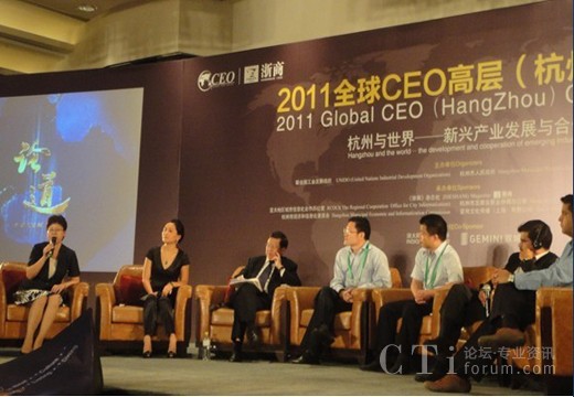 CTI論壇(ctiforum)9月21日消息(記者 張潔):9月13日下午,2011全球CEO高層(杭州)論壇在凱悅大酒店舉行。本次論壇由聯(lián)合國工業(yè)發(fā)展組織,杭州市人民政府主辦,論壇以“杭州與世界:新興產(chǎn)業(yè)發(fā)展與合作”為主題,圍繞浙江企業(yè)在新興產(chǎn)業(yè)轉(zhuǎn)型創(chuàng)新過程中的關注點即新興產(chǎn)業(yè)技術分享、商業(yè)模式探討以及融資渠道開拓等三方面,攜手幾十位位國內(nèi)外著名CEO共同探討解決之道,并借助會議的延展尋求可行之道。