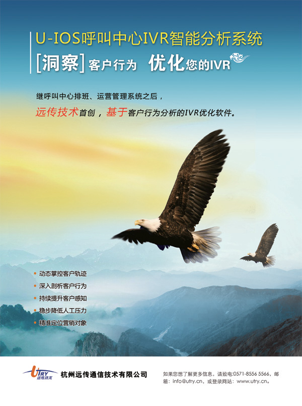 杭州遠(yuǎn)傳通信技術(shù)有限公司是國家高新技術(shù)企業(yè)、雙軟企業(yè),具備軟件成熟度CMMI 3級資質(zhì),是專業(yè)的客戶服務(wù)管理軟件及咨詢服務(wù)提供商。公司以“追求卓越”和“客戶滿意”為目標(biāo),致力于呼叫中心、營業(yè)廳等客戶服務(wù)渠道的管理提升和信息化。憑借著公司細(xì)致周到的服務(wù),扎實(shí)穩(wěn)健的技術(shù)實(shí)力,公司在電信、金融、保險(xiǎn)、旅游、航空、電力、互聯(lián)網(wǎng)及電子商務(wù)等行業(yè)領(lǐng)域擁有著眾多的成功案例,獲得了客戶的廣泛贊譽(yù)。