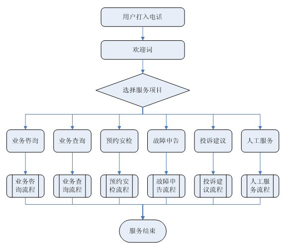 系統(tǒng)應(yīng)該提供開放的接口,以實(shí)現(xiàn)與各種應(yīng)用系統(tǒng)的無縫集成。以下為呼叫中心基本業(yè)務(wù)需求,其中短消息、Email、web方式為選配,呼叫中心系統(tǒng)應(yīng)支持上述方式,方便以后平滑升級。
