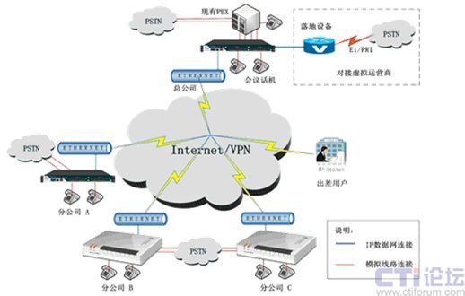 利用公共寬帶網(wǎng)絡(luò),實現(xiàn)總公司和各個分公司之間IP電話互通功能,從而免除總公司和各個分公司內(nèi)部溝通的通訊市話和長話費(fèi)用。