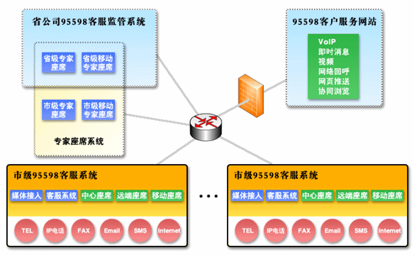 在電力客戶服務(wù)中心系統(tǒng)解決方案中,我們采用了更加先進(jìn)的第四代呼叫中心系統(tǒng)作為客服系統(tǒng)的平臺。可以實(shí)現(xiàn)的客戶聯(lián)絡(luò)方式已經(jīng)不僅僅局限于傳統(tǒng)的語音和傳真的呼叫形式,網(wǎng)絡(luò)電話、網(wǎng)絡(luò)傳真、Email、短消息、即時(shí)消息、互聯(lián)網(wǎng)應(yīng)用等都是與客戶聯(lián)絡(luò)的重要方式,涉及到的媒體載體也不僅是PSTN,還有基于VoIP技術(shù)的現(xiàn)代網(wǎng)絡(luò)、無線網(wǎng)絡(luò)等;也就是說第四代呼叫中心系統(tǒng)是一個(gè)融合網(wǎng)絡(luò)、語音、數(shù)據(jù)庫、視頻和安全技術(shù)的綜合信息服務(wù)平臺。整個(gè)95598電力客戶服務(wù)系統(tǒng)是由呼叫中心子系統(tǒng)和業(yè)務(wù)處理子系統(tǒng)共同構(gòu)成。