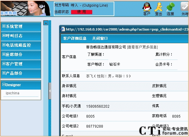 9. 外呼功能:座席人員可以選擇并點擊已有的聯(lián)系人、客戶的電話號碼,系統(tǒng)便自動外呼并接通座席電話,座席人員也可以手工輸入對方號碼,點擊外呼。