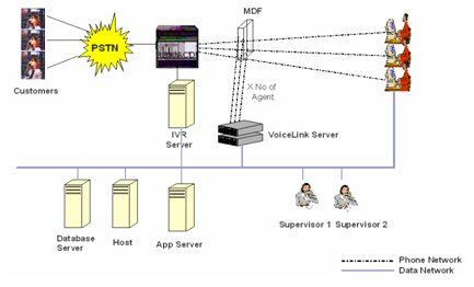 在Voicelink 電話網(wǎng)絡(luò)錄音方案下,語(yǔ)音可以通過(guò)每條的電話線獲得并能連接到Voicelink服務(wù)器上。語(yǔ)音將在Voicelink服務(wù)器里被處理,該服務(wù)器內(nèi)裝有語(yǔ)音卡。通過(guò)電話“摘機(jī)”和“掛機(jī)”的動(dòng)作來(lái)啟動(dòng)錄音和結(jié)束錄音。在TCP/IP的網(wǎng)絡(luò)下,主管可以調(diào)聽錄音并通過(guò)登陸到服務(wù)器上進(jìn)行用戶管理。