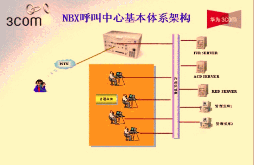 - 華為-3Com NBX采用數(shù)據(jù)包交換技術(shù),實(shí)現(xiàn)了語音與數(shù)據(jù)的融合。NBX呼叫中心系統(tǒng)平臺可以為客戶服務(wù)人員提供軟件和硬件的IP電話終端,用戶只需將坐席PC或IP話機(jī)接到桌面網(wǎng)口即可,無須重新部署語音線路,同時利用語音與數(shù)據(jù)融合的技術(shù)使得客服中心實(shí)現(xiàn)了統(tǒng)一的通信網(wǎng)絡(luò),減少的2套布線的繁瑣,大大降低了系統(tǒng)的維護(hù)及管理的工作量。