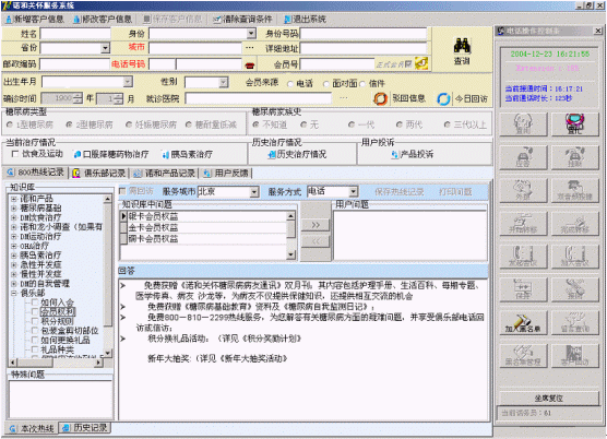 諾和關(guān)懷糖尿病服務(wù)中心的服務(wù)坐席可以實(shí)現(xiàn)患者信息的同步提示功能,當(dāng)電話被分配至坐席的同時,患者的資料信息也同步出現(xiàn)在PC終端上。同時坐席終端可以自動記錄對方的電話號碼,也可以實(shí)時顯示正在排隊(duì)等待的人數(shù),提示服務(wù)人員加快業(yè)務(wù)受理速度。