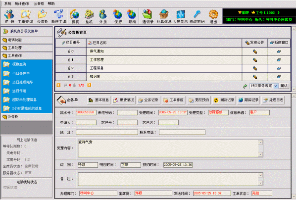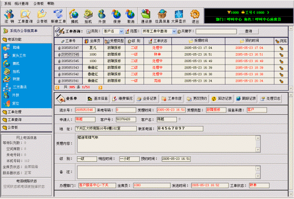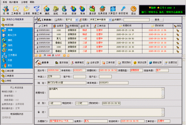 6.   系統(tǒng)聯(lián)通了座席員、營(yíng)業(yè)廳業(yè)務(wù)員、工程管理人員、維修網(wǎng)點(diǎn)派工人員、外勤維修人員、公司管理人員等各種角色使用系統(tǒng)的界面。