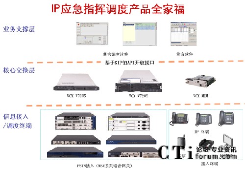 2、“呼叫控制層”指應(yīng)用解決方案的核心組件-軟交換平臺VCX V7000,VCX V7000特點(diǎn)如下: