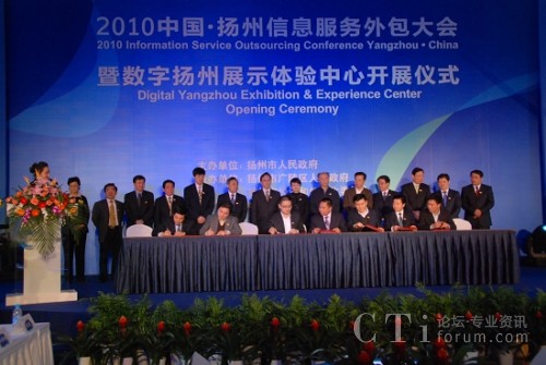 CTI論壇(ctiforum)4月22日消息(記者 潘婷婷):4月21日上午,由揚州市人民政府主辦、揚州市廣陵區(qū)人民政府及揚州市經(jīng)濟和信息委員會承辦、中國國際投資促進(jìn)會支持的“2010中國·揚州信息服務(wù)外包大會暨數(shù)字揚州展示體驗中心開展儀式”在名為“中國聲谷”的江蘇信息服務(wù)產(chǎn)業(yè)基地(揚州)召開。