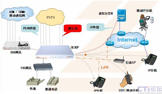Trunk號、內(nèi)部小號),實(shí)現(xiàn)多路由選擇;支持PSTN外部用戶,如與GS8移動模塊網(wǎng)關(guān)配合使用,還可實(shí)現(xiàn)移動的中繼服務(wù),解決中繼不足問題,且有一號通等功能;擁有逃生功能,解決緊急狀況的通信問題。虛擬辦公室的概念,為客戶提供更自由的辦公通信手段。采用WEB管理方式,使用便捷,維護(hù)簡單。