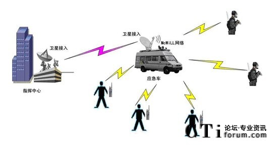 以在汶川地震中發(fā)揮出色的捷思銳的通信車為例,該車輛不同于公網(wǎng)移動通信使用的制式,所提供的無線視頻、無線語音、集群調(diào)度等業(yè)務都承載在專用終端上,目標市場應用為發(fā)生自然災害、突發(fā)事件、電信網(wǎng)絡中斷、需要專用通信系統(tǒng)場景時的無線通信。與其應急通信車相關聯(lián)的業(yè)務系統(tǒng)包括地面指揮中心、衛(wèi)星通信、McWiLL無線通信、現(xiàn)場應急通信車、多業(yè)務作業(yè)終端、手持調(diào)度終端等。