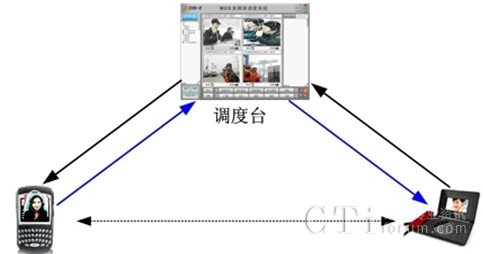 當(dāng)指揮人員需要讓兩個視頻設(shè)備實現(xiàn)點對點視頻通信時,如兩個終端是同一型號設(shè)備,可直接進行視頻通信,如兩個不同型號的視頻設(shè)備需要進行視頻通信,可由調(diào)度臺調(diào)度兩個視頻設(shè)備,然后通過視頻轉(zhuǎn)發(fā)功能實現(xiàn)兩個不同視頻設(shè)備的視頻通信。