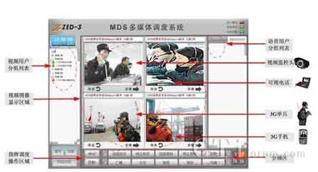 一方面,MDS系統(tǒng)可實現(xiàn)對行業(yè)用戶各種終端類型的調(diào)度,如通過有線IP網(wǎng)絡(luò)實現(xiàn)對有線調(diào)度話機進行語音調(diào)度,對固定點監(jiān)控攝像頭進行視頻調(diào)度;通過PSTN/GSM/CDMA/3G網(wǎng)絡(luò)實現(xiàn)對外線電話進行遠(yuǎn)程語音調(diào)度;通過3G網(wǎng)絡(luò)實現(xiàn)對遠(yuǎn)程單兵人員進行遠(yuǎn)程音視頻調(diào)度;通過無線寬帶網(wǎng)絡(luò)實現(xiàn)對移動終端進行音視頻調(diào)度;通過IP網(wǎng)絡(luò)召開遠(yuǎn)程視頻會議。