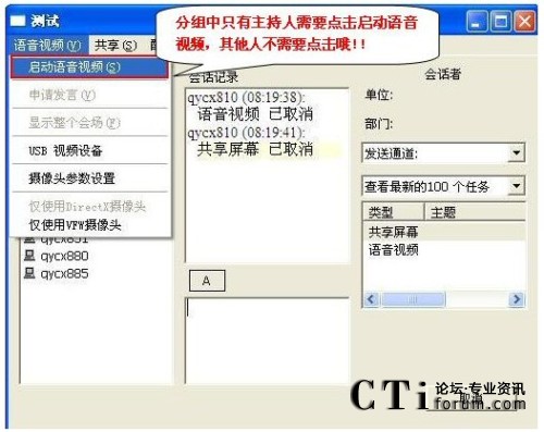 圖:清揚(yáng)視頻會(huì)議軟件——啟動(dòng)動(dòng)態(tài)圖像共享與轉(zhuǎn)發(fā)