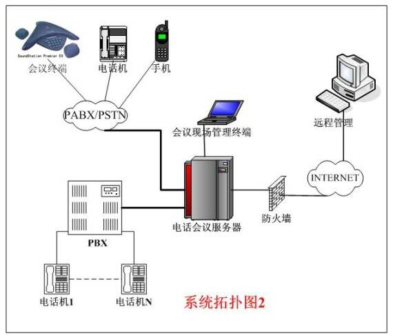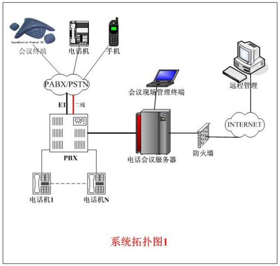 整個(gè)系統(tǒng)的拓?fù)浣Y(jié)構(gòu)一般有以上兩種連接方式,拓?fù)浣Y(jié)構(gòu)如上圖所示。圖1中的用戶交換機(jī)直接和公網(wǎng)PSTN或電信交換機(jī)相連。異地與會者必須先進(jìn)入用戶交換機(jī)后,再進(jìn)入電話會議主機(jī)。圖2中的連接方式是把電話會議系統(tǒng)主機(jī)直接和公網(wǎng)PSTN或電信交換機(jī)相連,異地與會者直接通過公網(wǎng)進(jìn)入電話會議主機(jī)。