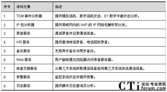 數(shù)字錄音系統(tǒng)通過模擬用戶線或者Lanside E1與交換機(jī)相連。當(dāng)錄音對象摘機(jī)通話時(shí),交換機(jī)將數(shù)字錄音系統(tǒng)和被錄音通話雙方建立會(huì)議,并通過CTI向數(shù)字錄音系統(tǒng)發(fā)出錄音啟動(dòng)命令;當(dāng)錄音對象結(jié)束通話時(shí),交換機(jī)將數(shù)字錄音系統(tǒng)和被錄音通話雙方拆除會(huì)議,并通過CTI向數(shù)字錄音系統(tǒng)發(fā)出錄音結(jié)束命令。