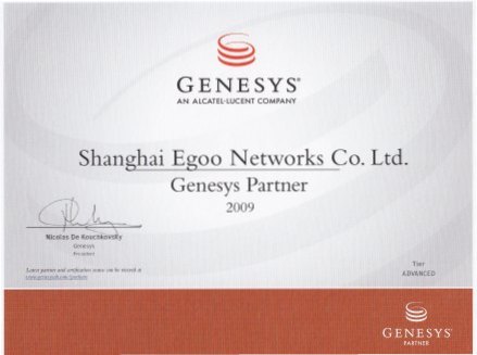 上海易谷與Genesys公司雙方在2009年達(dá)成大中華區(qū)長(zhǎng)期合作伙伴關(guān)系,開(kāi)展廣泛、深入的合作。上海易谷將憑借其深厚的技術(shù)背景、優(yōu)質(zhì)的服務(wù)能力,積極推動(dòng)世界第一的CTI及SIP新一代呼叫中心基礎(chǔ)平臺(tái)。為配合產(chǎn)品多樣化、專(zhuān)業(yè)服務(wù)的發(fā)展戰(zhàn)略,與