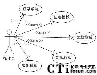 報表設(shè)計工具,主要功能是用來在可視化界面中察看和修改記錄統(tǒng)計,負責(zé)處理報表的設(shè)計工作。它應(yīng)該具有全面的報表設(shè)計功能和友好的用戶界面,能夠被普遍的數(shù)據(jù)處理和編輯時所采用。該報表設(shè)計工具的操作員利用該工具可以進行系統(tǒng)登錄,創(chuàng)建模板,編輯模板,加載模板,卸載模板等,用例圖[30]