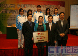 CTI論壇(ctiforum)04月14日消息: 日前,”蘇州 2009中國呼叫中心高峰論壇暨奧運觀眾呼叫中心志愿者表彰大會”在蘇州工業(yè)園區(qū)召開,表彰在奧運期間對奧運呼叫中心作出突出貢獻的十三家志愿者選派單位及先進個人。大會由第二十九屆奧林匹克運動會組織委員會與中國信息化推進聯盟客戶關系管理專業(yè)委員會共同主辦,蘇州工業(yè)園區(qū)、CCCS聯絡中心標準委員會、ICMI客戶管理學院(中國區(qū))共同承辦。
