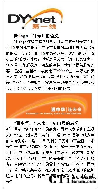 CTI論壇(ctiforum)08月20日消息: 知名網(wǎng)絡(luò)服務(wù)商第一線安萊,十年間憑借經(jīng)驗(yàn)豐富的團(tuán)隊(duì),靈活的服務(wù)、可靠的網(wǎng)絡(luò)系統(tǒng)等,遙遙領(lǐng)先于眾多競爭對手,傲然屹立于大中華地區(qū)。目前,正值第一線安萊十周年慶之際,全新的企業(yè)商標(biāo)和“通中華.連未來”的新口號也向大眾展示。公司提出將幫助客戶實(shí)現(xiàn)“立足大中華,拓展全世界”的愿景。