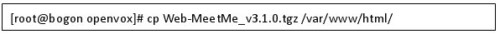 登入到smb服務(wù)器,將XP里的Web-MeetMe_v3.1.0.tgz復(fù)制到openvox目錄下,然后再將Web-MeetMe_v3.1.0.tgz拷貝到/var/www/html/目錄下,命令如下: