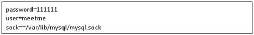 6)現(xiàn)在我們從新連接到MySQL service,我們以剛剛創(chuàng)建的用戶(hù)meetme登入: