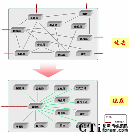 “12345” 政府熱線系統(tǒng)建設的最終目標,將要整合現(xiàn)有的全部政府部門公開電話資源,將所有的此類電話統(tǒng)一為一個號,使政府公開電話服務范圍覆蓋到政府公共服務的全部領(lǐng)域。通過12345電話網(wǎng)絡將各級機構(gòu)服務電話資源進行互聯(lián)(市區(qū)縣政府、公安非應急電話、社保局、民政局、建設局、規(guī)劃局、國稅局、地稅局、教育局、衛(wèi)生局、文體局、旅游局、交通局、房產(chǎn)局等),這樣市民就不用再被這些部門上百個不同的電話號碼弄得無所適從,也不會因為弄不清楚事情歸哪個部門管了。