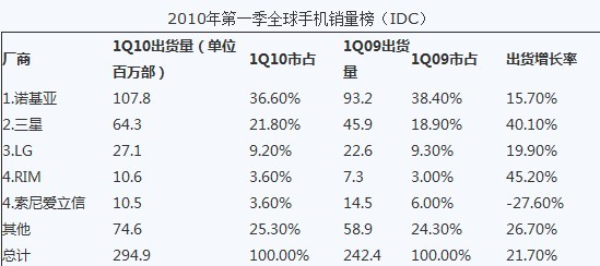 RIM替代Moto進(jìn)入前五是全球手機(jī)版圖的重要變化。事實(shí)上自2005年第二季度索尼愛立信替代明基西門子進(jìn)入前五以來,這五大廠商的名單就再也沒有變化過。RIM進(jìn)入前五的事實(shí)證明了智能手機(jī)市場的巨大潛力,而摩托羅拉近期也在試圖通過一系列Android機(jī)型重現(xiàn)昔日榮光。