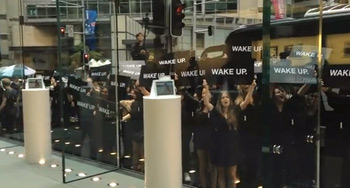 澳大利亞當(dāng)?shù)孛襟w上周報(bào)道,位于悉尼市的蘋(píng)果零售店外有一大群人聚集在一起,高舉口號(hào)并大喊著“wake up”(醒醒吧),呼吁人們反對(duì)蘋(píng)果產(chǎn)品。