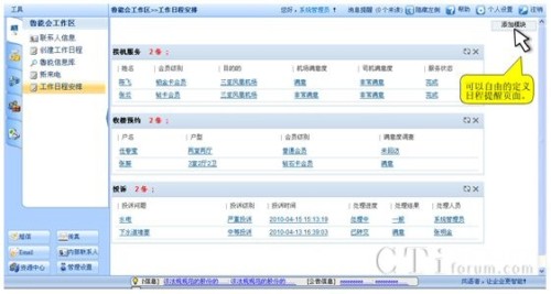 同時為提高客服中心人員的工作效率,增加了“工作日程安排”功能,客服人員每天登陸系統(tǒng)后,可以第一時間查看到當(dāng)天要完成的各項(xiàng)工作;日程可以根據(jù)每位客服人員的需求類別自由安排,創(chuàng)建不同的工作分類和時間安排。
