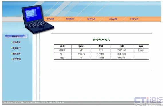 - CTI服務(wù)器/WEB和短信服務(wù)器/數(shù)據(jù)庫(kù)服務(wù)器:采用IBM/HP/DELL等國(guó)外大品牌的服務(wù)器。