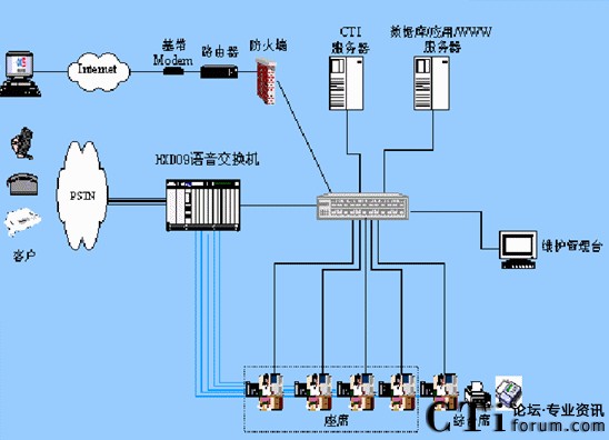 HXD09是基于交換機(jī)、CTI 和 TCP/IP 技術(shù),實(shí)現(xiàn)話音、傳真、 座席、IP 電話等多種服務(wù)方式一體化的可編程交換機(jī)。跟傳統(tǒng)的語(yǔ)音插卡