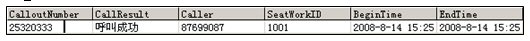 可以通過預測撥號識別各類呼叫結果,如:忙音、空號、或無人接聽等,只將有效的通話轉接至業(yè)務人員,同時將呼叫結果寫入數(shù)據(jù)庫UT_IMCALL表(如下圖), 備下次呼叫參考, 同時記錄了工號及呼出主叫, 當該客戶(25320333)呼入時, CTI將自動導航該客戶(被叫號碼)到對應的業(yè)務員工號(1001)和主叫號碼(87699087), 保證客戶(25320333)和業(yè)務員(1001)一對一服務。