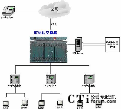 110、119、122報(bào)警電話的傳送:110、119、122報(bào)警電話呼入及分流出局通過2條PCM 2M數(shù)字中繼線路,其中1條PCM 2M(30/32)接口為報(bào)警入,另1條PCM