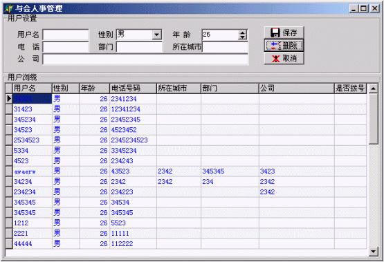 只有會議組建立后,需要為會議組選擇需要參加的用戶電話,即分公司電話,以便系統(tǒng)確定會議參加人員,管理員選擇人事管理后,用戶管理如下圖: