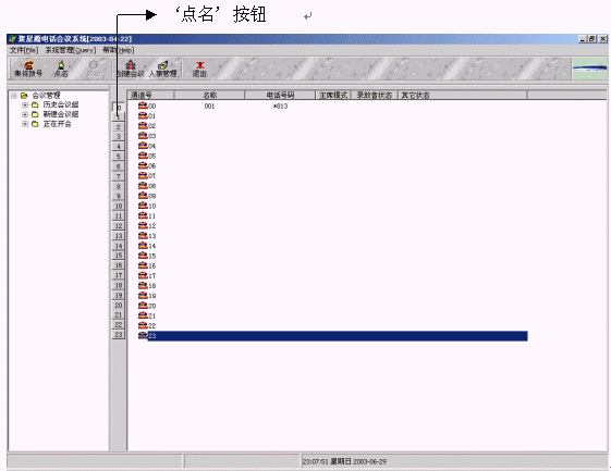 電話接入后,只能聽,不能說,通過'點(diǎn)名' 按鈕,主席可單獨(dú)和某個參加者通話。一次只能一人,確認(rèn)用戶身份,實(shí)現(xiàn)點(diǎn)名功能。