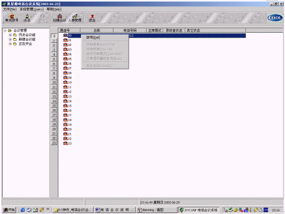 2、系統(tǒng)主界面的右邊樹型結(jié)構(gòu)是電話呼出或接入的動態(tài)瀏覽器,包括通道號,名稱,電話號碼等等。