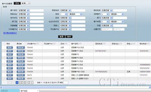 例如,以區(qū)域?yàn)闂l件進(jìn)行搜索,區(qū)域選擇北京后,點(diǎn)擊查詢,你想要的北京區(qū)域的客戶全部出現(xiàn)在客戶列表中。