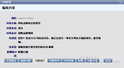 在后臺能夠?qū)柧磉M行添加或刪除,對問卷的設(shè)計、表現(xiàn)形式、問題類型等進行編輯修改。