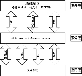 如圖所示為HOLLYWAY CTI Message Server基礎版結構圖。