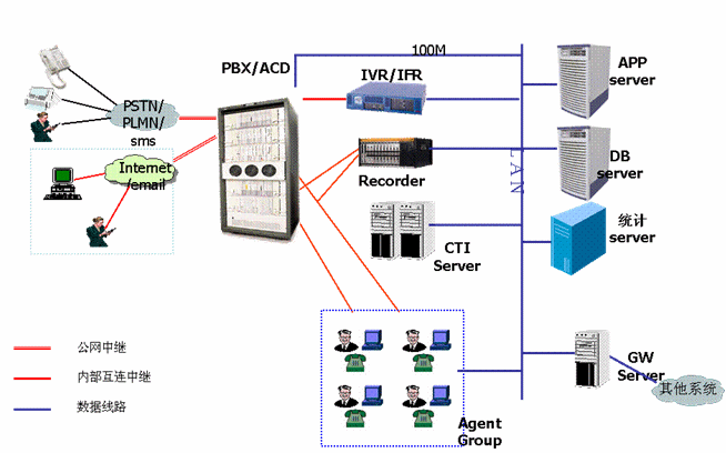 在建立呼叫中心前,廣州自來水公司只有覆蓋公司和各供水管理所的供水熱線系統(tǒng),該系統(tǒng)只有簡單的接入電話,沒有完善的呼叫中心功能,話務量承受能力小,接通率低,沒有統(tǒng)一的服務窗口和后臺,統(tǒng)計功能也只能靠手工實現(xiàn)。為了更好的為廣大市民服務,廣州市自來水公司決定取消原先供水熱線工作模式,由公司成立客戶服務中心集中管理,建立基于互聯(lián)網(wǎng)的呼叫中心,負責全市范圍內(nèi)客戶服務,使客戶能夠通過各種資訊工具如電話、傳真、電子郵件、短信等方式從自來水公司獲取用水信息,并能實現(xiàn)業(yè)務申請、投訴、業(yè)務受理、業(yè)務咨詢、業(yè)務查詢等,采用回撥技術(shù)實現(xiàn)客戶回復、客戶回訪、客戶調(diào)查等業(yè)務。
