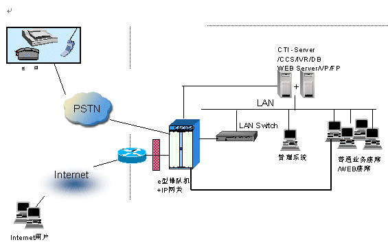 。。華為的INtess®-e型多媒體呼叫中心產(chǎn)品,是集成了交換機和計算機網(wǎng)絡(luò)的系統(tǒng),根據(jù)國內(nèi)各經(jīng)營服務(wù)行業(yè)的業(yè)務(wù)特點和發(fā)展趨勢,以及華為公司對國內(nèi)電子商務(wù)發(fā)展的深刻理解,以充分理解和貼近用戶需求為設(shè)計、開發(fā)理念推出的高集成度的小型呼叫中心平臺。