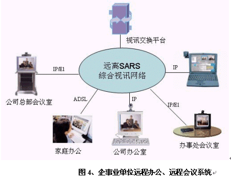 非典型肺炎不但對國家的經(jīng)濟造成了重大的損失,而且使得全社會對"非典"噤若寒蟬,大家對出差甚至外出都異常緊張。華為公司提供為個人家庭辦公、探親訪友的遠(yuǎn)程多媒體通信解決方案,大家在家里即可通過網(wǎng)絡(luò)和親朋好友"面對面"交流、在家中辦公。減少外出、遠(yuǎn)離人員眾多地區(qū),有效預(yù)防非典。對于有條件的用戶群可以推薦在現(xiàn)有寬帶線路或新增寬帶線路上購買軟件,即可實現(xiàn)親朋好友間的個人視頻通信;對于暫不具備寬帶條件的群體,如學(xué)生等,可以考慮在重點營業(yè)廳設(shè)立專門會議室或者視訊公話亭等,提供預(yù)約視頻服務(wù),滿足其溝通的需求。
