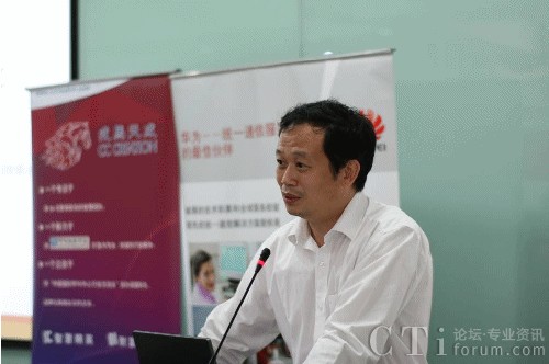 圖:CTI論壇副總經理 秦克旋作《2009中國呼叫中心產業(yè)研究》的主題演講