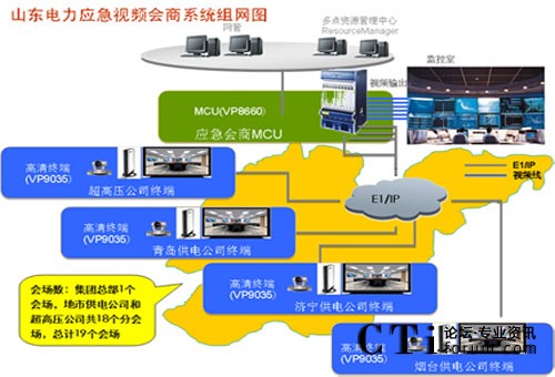 山東電力集團(tuán)公司為了開展應(yīng)急視頻會(huì)商業(yè)務(wù),需建設(shè)一套覆蓋集團(tuán)總部、地市供電公司、超高壓公司等19個(gè)單位的視訊系統(tǒng),并能夠與國家電網(wǎng)、地市供電公司已有系統(tǒng)實(shí)現(xiàn)音、視頻的互通。